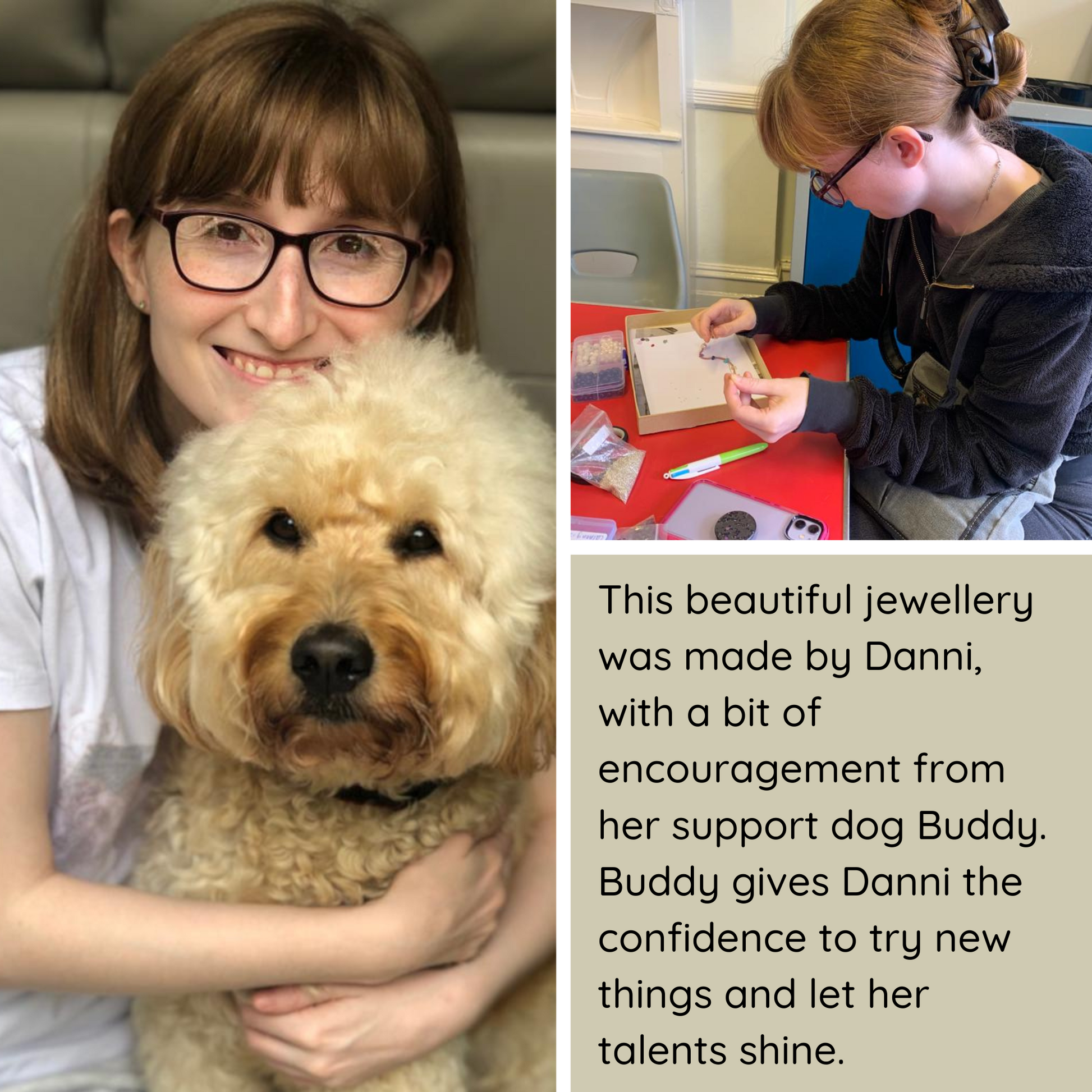 This piece was made by Danni, who loves designing and making fabulous works of art and snuggling with her support dog Buddy.